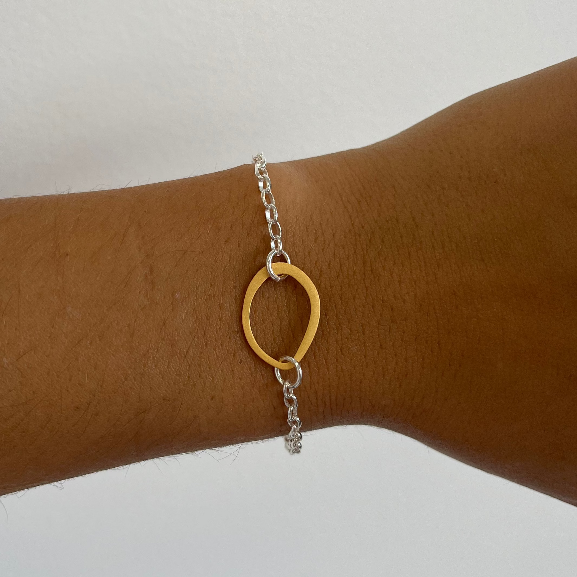This bracelet's design was inspired by the shape of puddles in sand before they collapse.